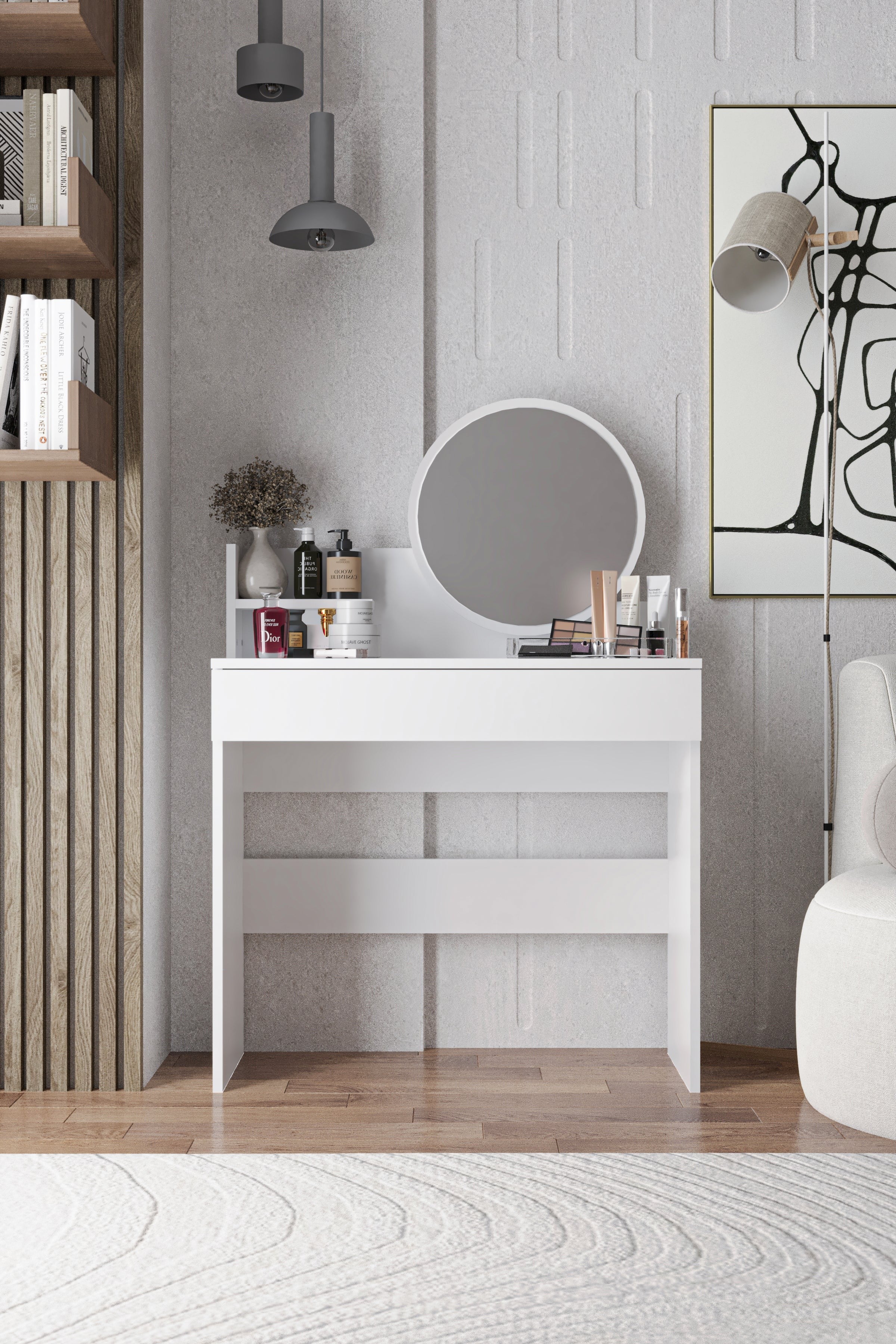 HARMONY MİNİ MAKYAJ MASASI BEYAZ YUVARLAK AYNA