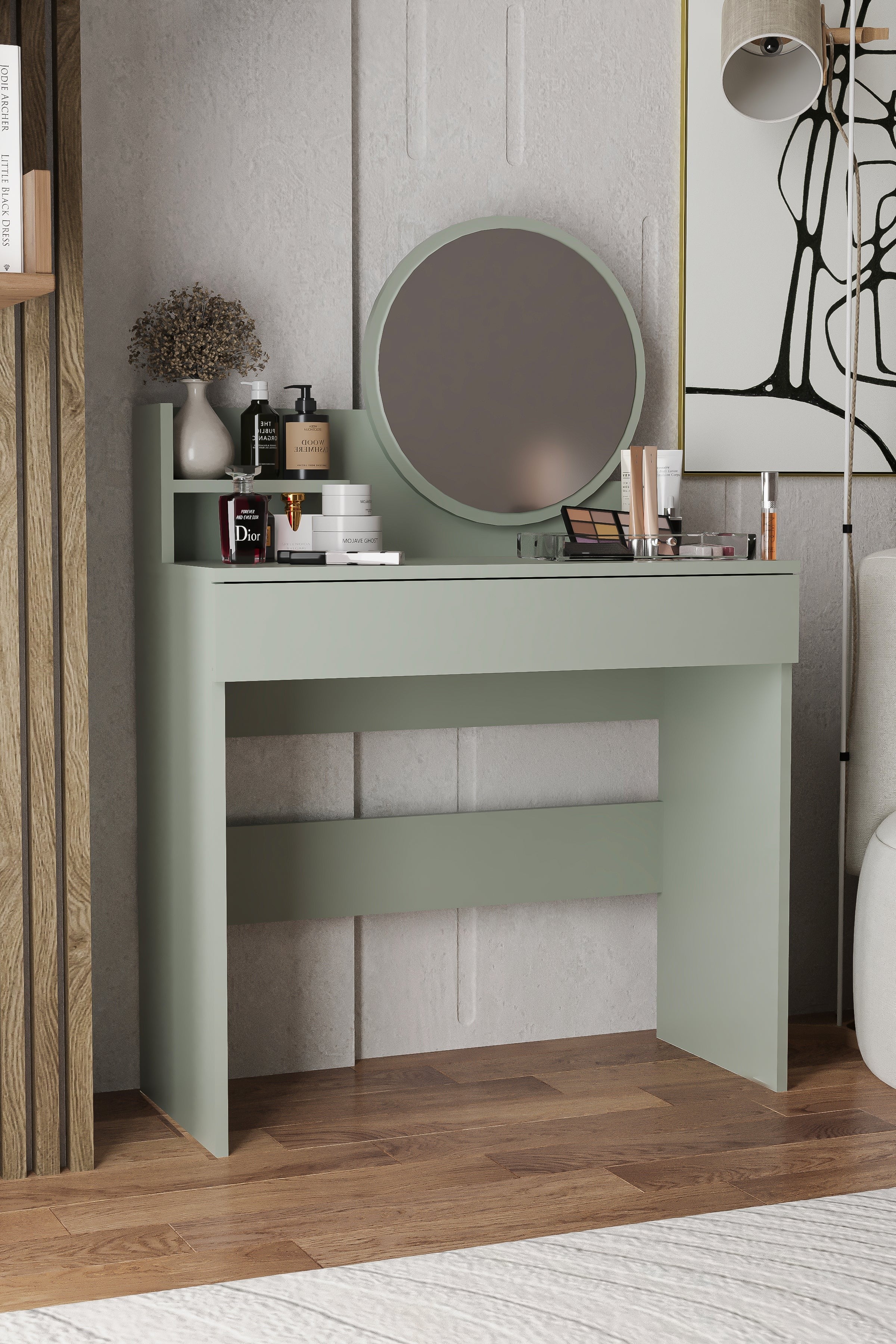 HARMONY MİNİ MAKYAJ MASASI YEŞİL YUVARLAK AYNA